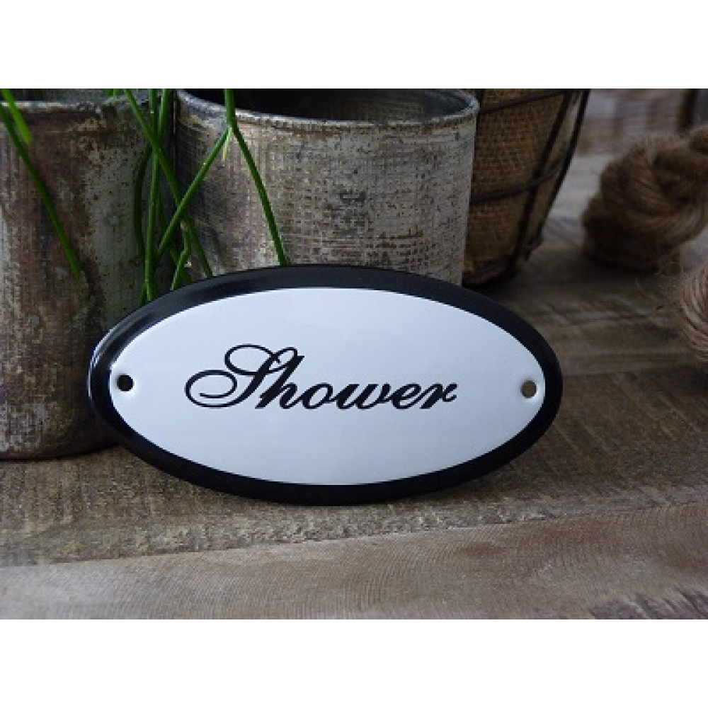 De afmeting van het emaille deurbordje is 10 centimeter breed en 5 centimeter hoog.