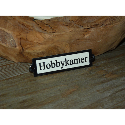 De achtergrond van het bordje is creme met een zwarte rand en zware letters, zoals afgebeeld op de productafbeelding.