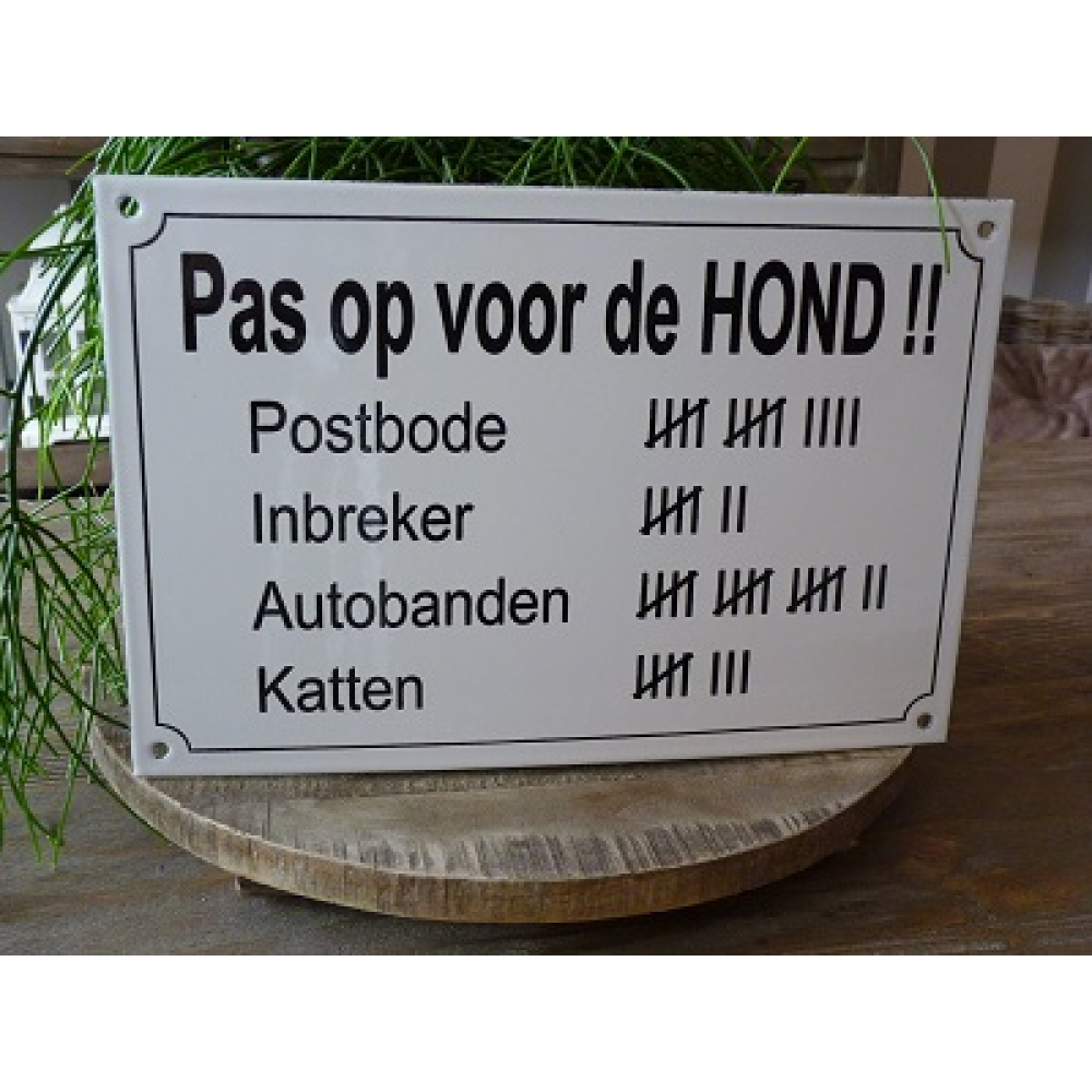 Emaille bord 'Pas op voor de hond!!'