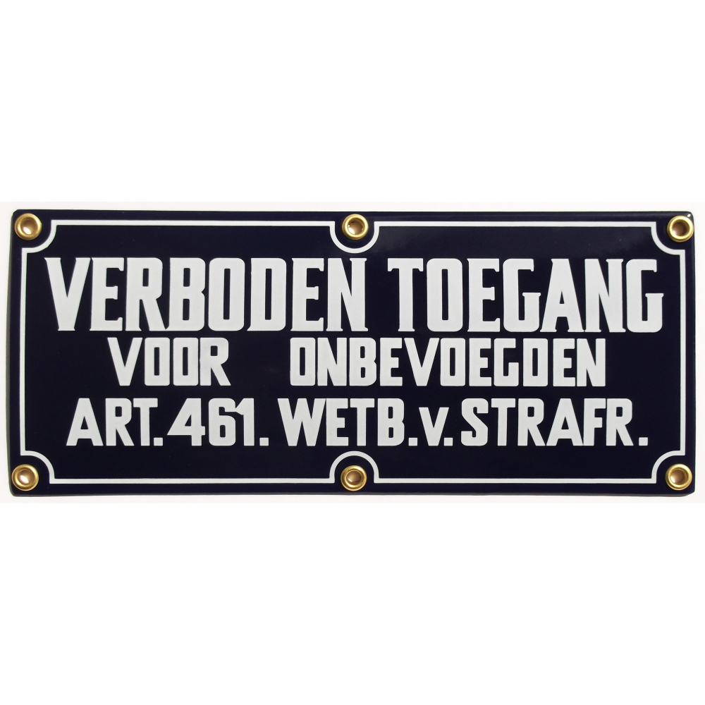 Waarschuwingsbord: Verboden toegang artikel 461 wetboek van strafrecht.