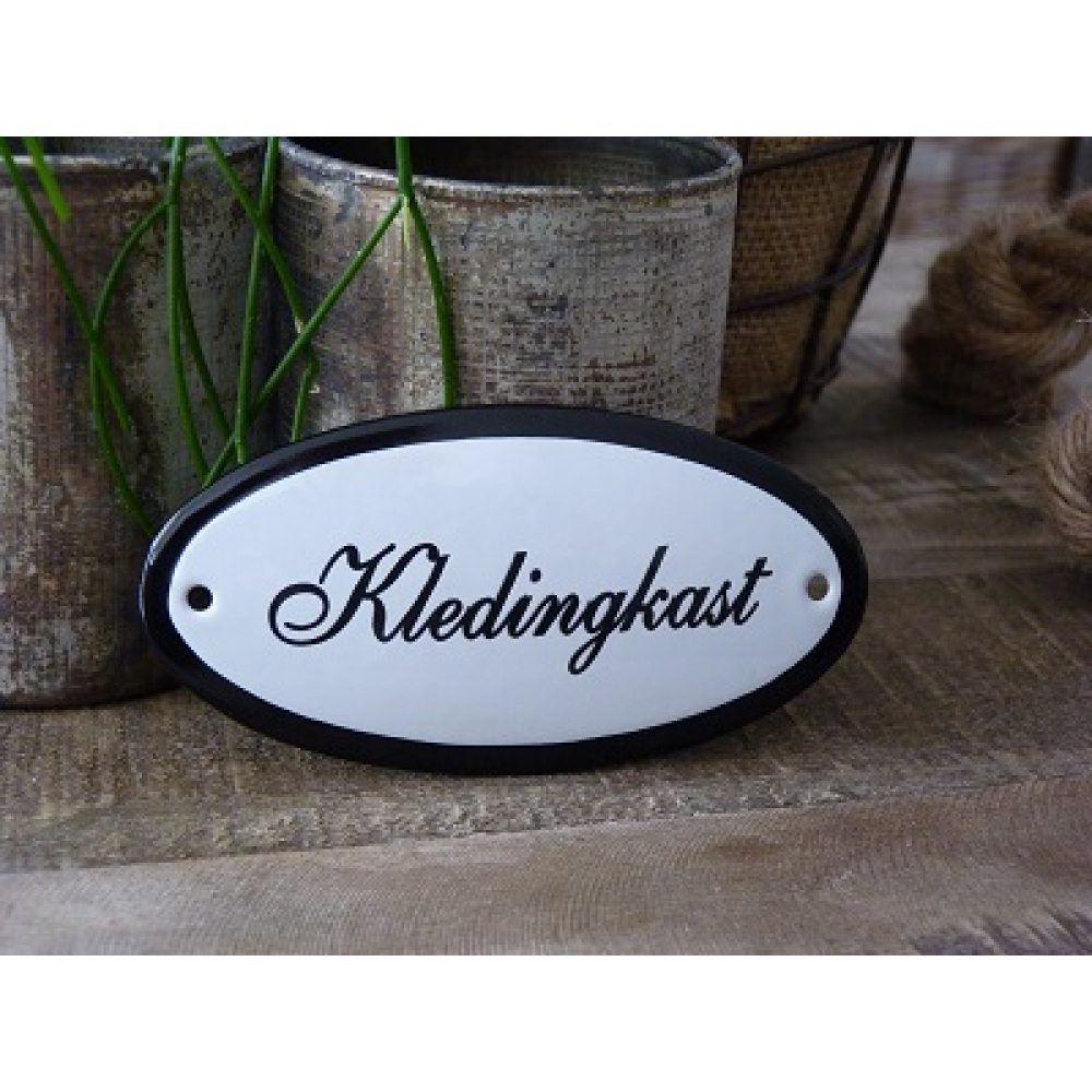 Emaille deurbordje ovaal 'Kledingskast'