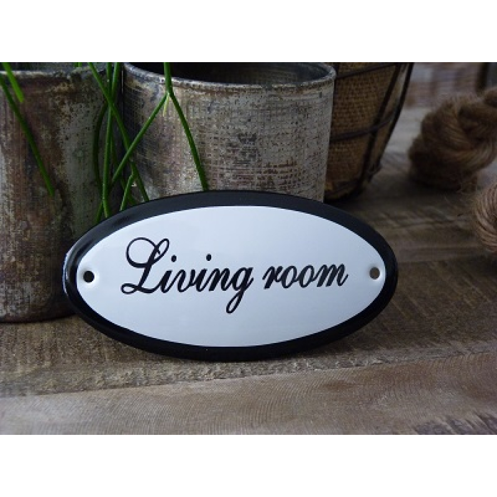 Emaille deurbordje ovaal 'Living room'