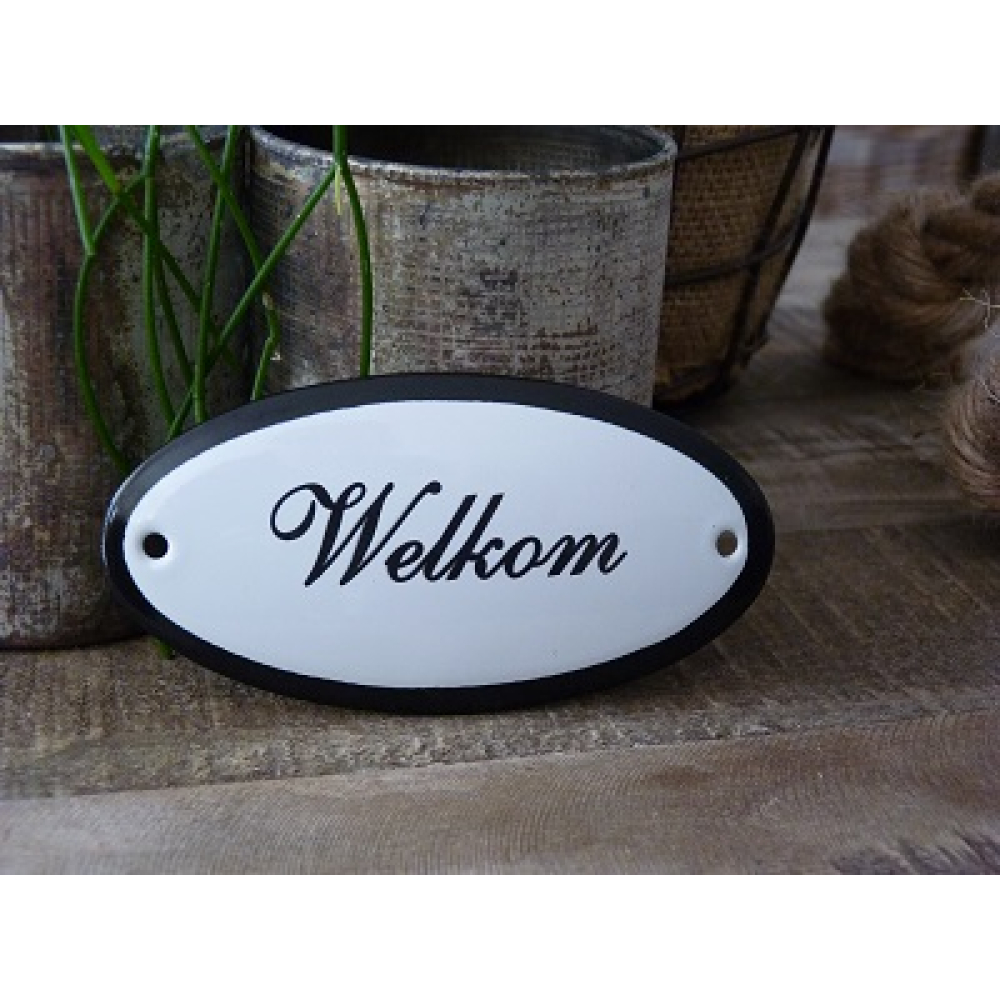 Emaille deurbordje ovaal 'Welkom'