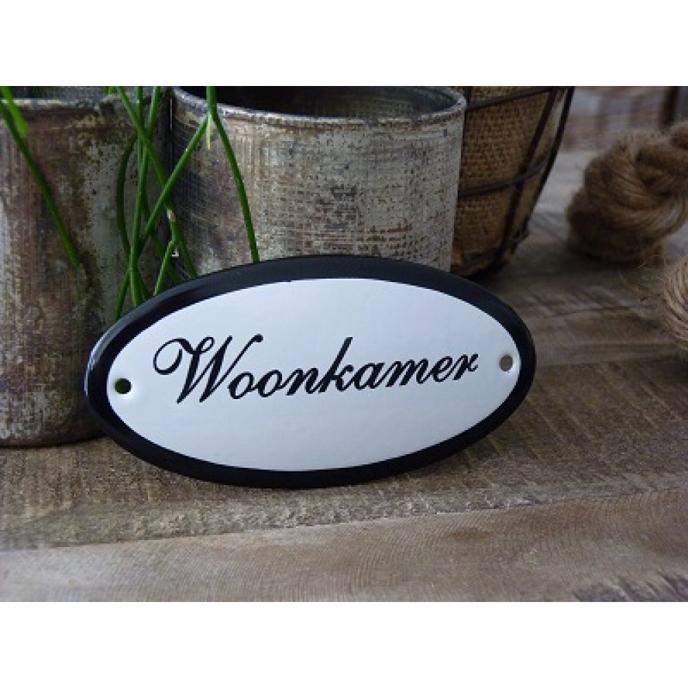 Emaille deurbordje ovaal 'Woonkamer'